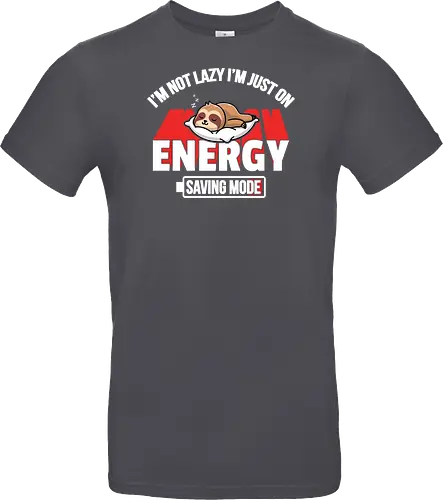 A cute sloth is depicted napping on a pillow with the humorous phrase, "I'm not lazy I'm just on energy saving mode" . The overall design suggests a playful take on relaxation or resting.